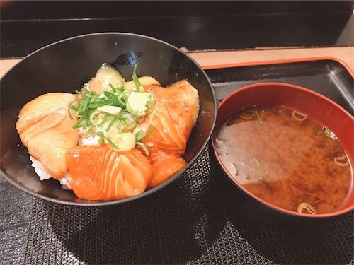 いつものスナックパークに行ってきました。夕方なのでちょい飲みと思っていましたが色々見てるうちに小腹が空いてきたのでご飯ものを頂きました。 行ったお店は海鮮丼の駅前というお店 本日の日替わり丼はまちサーモンの漬け丼+赤だし 550円+50円=600円 …