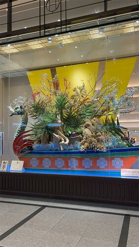 明けましておめでとうございます 今年もよろしくお願いします 阪急百貨店本店のショーウィンドウです クリスマスの翌日から正月モード 1枚目は昇り竜です 2枚目は斜めから撮ってしまったので余計分かりませんが… 正面からだと… ある動物が隠れています 一番…